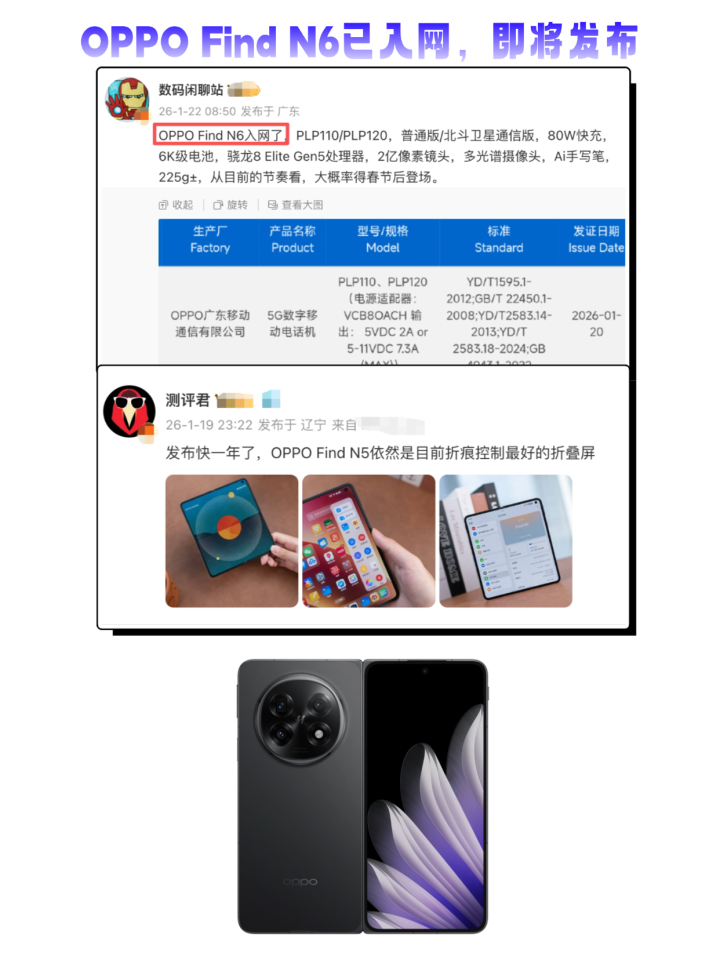 具体配置上,Find N6有2亿像素、丹霞色彩还原镜头、骁龙8EG5、6000+mAh大电池、AI手写笔等等,重量225g左右,依旧保持轻薄手感,配置却该有的都有,你们期待吗?